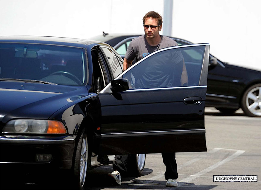 David Duchovny stops off at a liquor store on his way home in Malibu! Duchovny was seen leaving the store holding a brown paper bag and got into his black BMW and headed to his oceanside house in Malibu, CA. David dressed down and wore track pants and a 'sunset' T-Shirt as he ran his errand in Malibu. May 19, 2013 - Caption provided by photographer